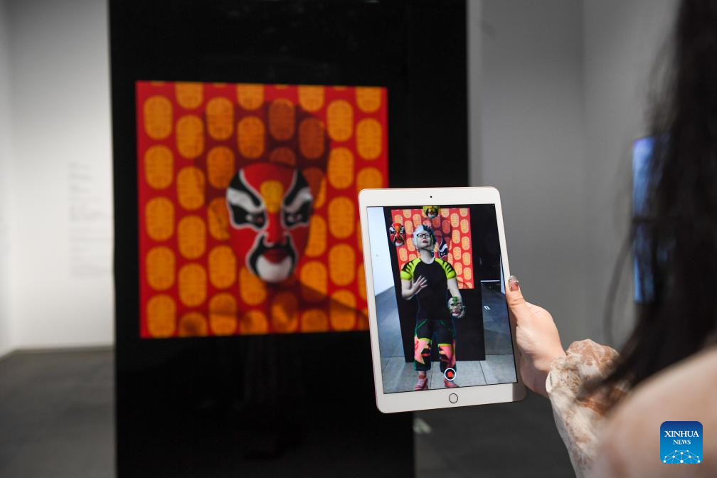 A visitor takes photos of an artistic work at a new venue of Shenzhen Art Museum in Shenzhen, south China's Guangdong Province, Nov. 6, 2023. The new venue of Shenzhen Art Museum opened on Monday with a series of exhibitions set to open to the public the next day. (Xinhua/Mao Siqian)