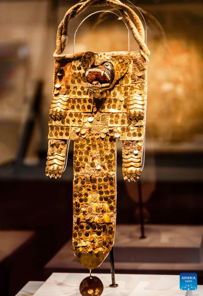 This photo taken on Jan. 9, 2024 shows an exhibition on the Inca civilization at the Jinsha Site Museum in Chengdu, southwest China's Sichuan Province. The exhibition opened to the public on Wednesday and will last until April 10. It showcases 168 pieces or sets of exhibits from 14 museums in Peru, including boneware, ceramics, metals, stoneware, woodware, textiles, paintings, and mummies. (Photo by Zhang Yan/Xinhua)