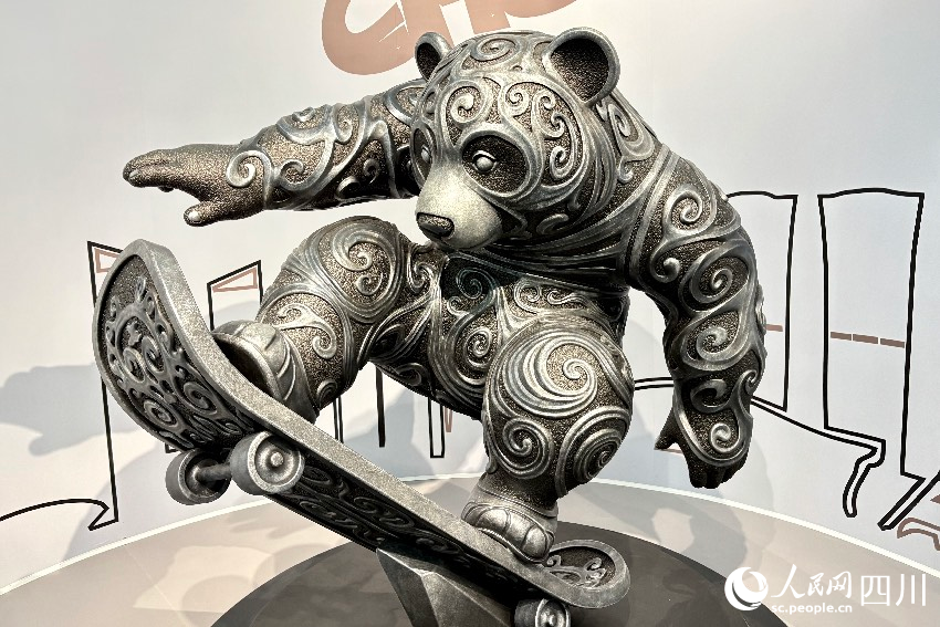 Giant panda-themed artworks are displayed during the "Panda Homeland: Culture & Creativity Contest" exhibition at Beihu Ecological Park in Chengdu, southwest China's Sichuan Province. (People's Daily Online/Zhu Hong)