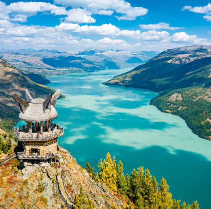 ホルム村から西へ30?、アルタイの深い森の中に、靜かな湖――カナス湖の風景が広がっている。神秘的な「湖の怪物」伝説、さまざまな色に光り輝く湖水、まばゆいばかりの自然景観、そして感動的な物語……それら全てがカナス湖を訪れる多くの人々を魅了している。新疆ウイグル自治區の最北部、アルタイ山脈の南斜面に位置するカナス湖は、カザフスタン、ロシア、モンゴル、中國の4カ國が國境を接する地であり、國家地質公園、國家森林公園、中國自然保護區、國家自然遺産に指定されている。