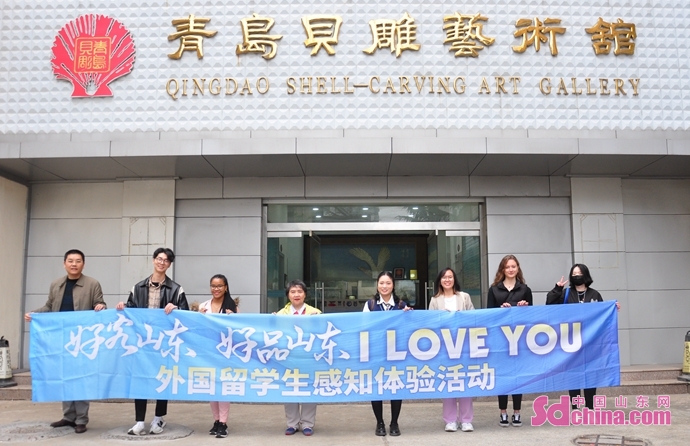 4月28日、ロシア、韓國、タイ、インドネシア、赤道ギニアなどからの留學生は「好客山東 好品山東 I love you」外國留學生體験活動のチームとして、青島貝彫蕓術館を訪れ、手作りの魅力を感じた。