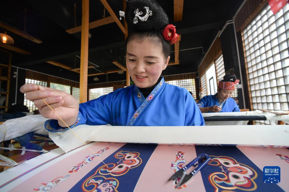 貴州省黔東南ミャオ族トン族自治州施秉県は近年、ミャオ族刺繍の特色産業の育成と形成に持続的に取り組み、特色民族文化加工企業を招致し、「研究?生産?販売」と観光業を一體化させたミャオ族刺繍産業チェーンを形成している。また「企業+実習+農家」のモデルを採用し、オンライン?オフライン販売を実現している。2000人以上のミャオ族女性が自宅付近で雇用し、所得を増やしている。施秉県はさらに無形文化財の伝承を持続的に強化し、現地の子供に幼い頃からこの伝統技術に親しませている。山奧の無形文化財が新たな活力を放っている。