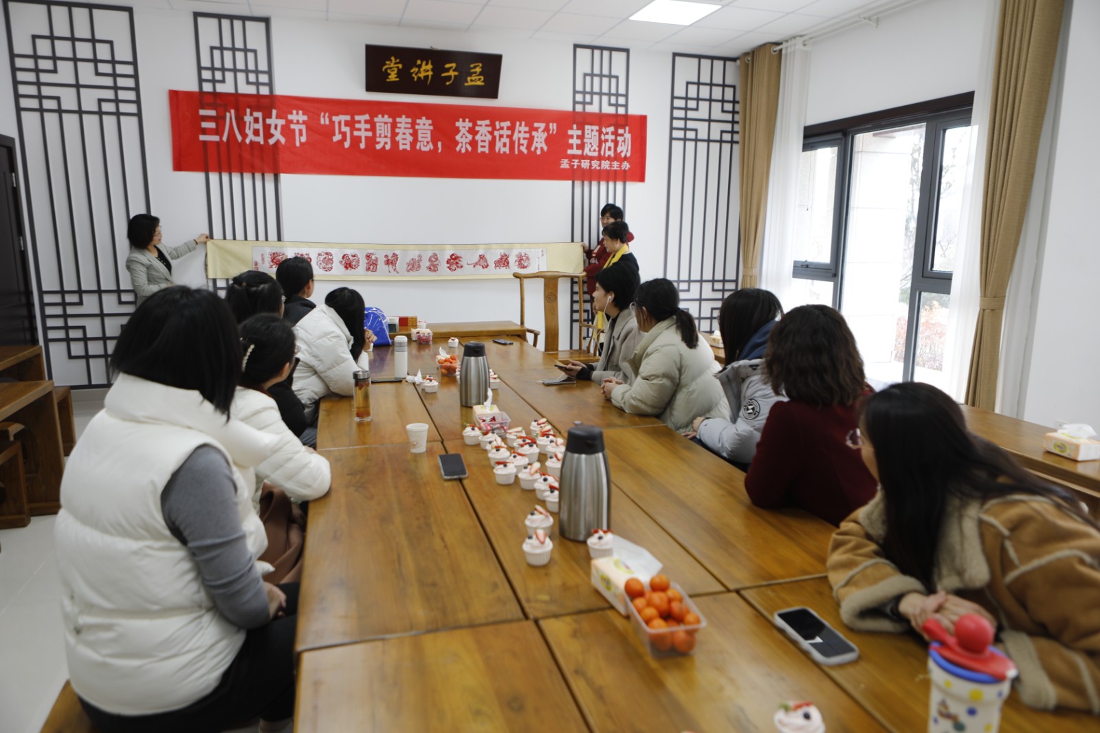 為慶祝第115個“三八”國際勞動婦女節,豐富職工文化生活,激揚巾幗力量,3月7日,孟子研究院婦女聯合委員會聯合工會舉辦“巧手剪春意 茶香話傳承”主題活動,全體女職工參加。
