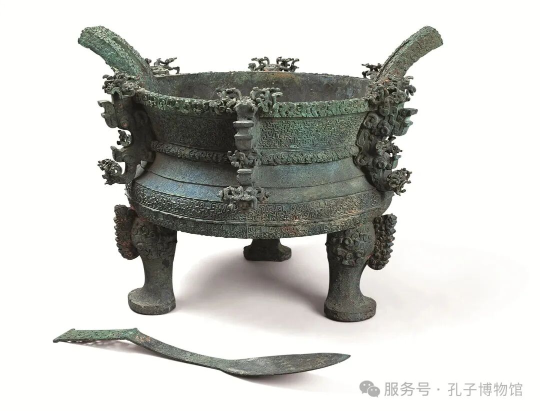 展廳的結尾處,孔子博物館的“商周十供”分坐兩旁,氣勢恢宏。乾隆皇帝第五次前往曲阜祭拜孔子時,看到闕里廟堂上陳列的“漢五供”等禮器,認為其色澤不夠古樸,便御賜了十件商周時期的青銅器作為祭孔禮器,這便是“商周十供”的由來。這套古代國家祭孔禮器,造型精美、規格極高,既承載著不同朝代帝王對孔子的尊崇與禮敬,也彰顯了中國傳統文化與文明禮儀的源遠流長。