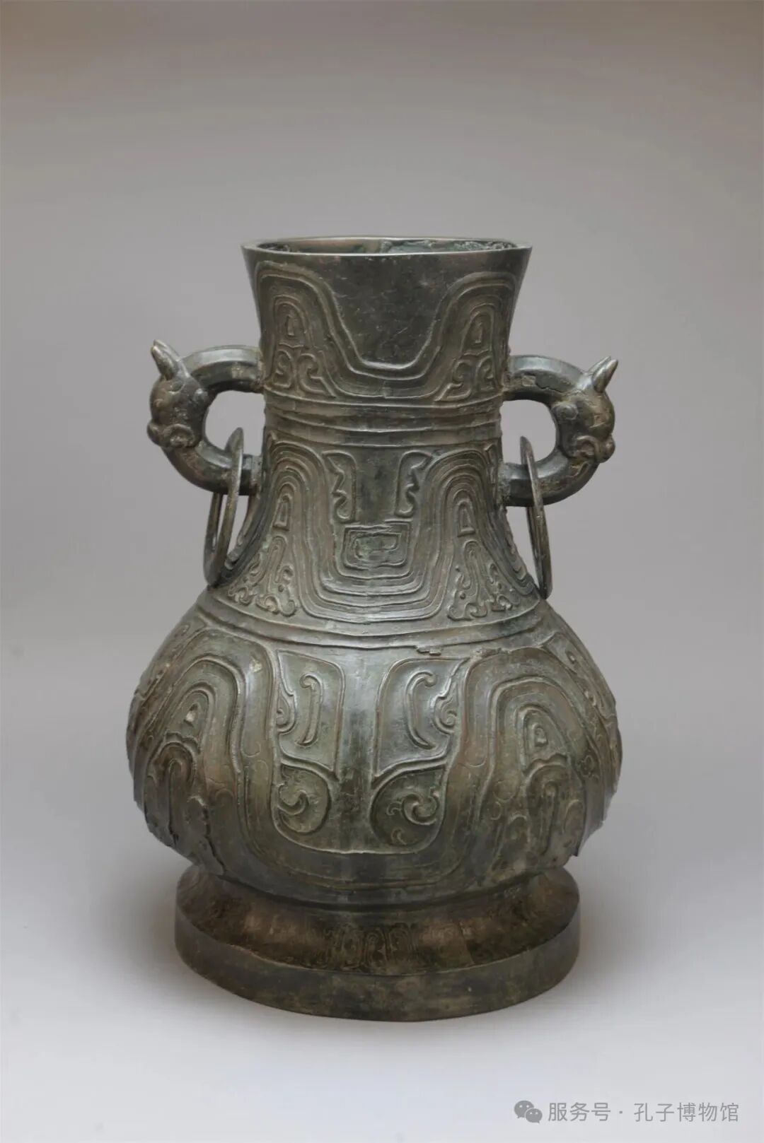 想要理解孔子的思想,必先厘清其源頭。展覽開篇陳列的,是河南博物院館藏的青銅觚。作為古代酒器,青銅觚容量二升,“取名觚者,寡少義、戒人貪飲”,蘊含著勸人節制的深意。但在春秋時期,公卿大夫沉迷飲酒之風盛行,即便用青銅觚飲酒,也絲毫沒有節制之意。面對當時“君不君、臣不臣”的混亂現狀,孔子發出了“觚不觚,觚哉!觚哉!”的深沉感慨。這件文物雖不算稀世珍品,但其背后承載的時代印記,讓它在這個展區中顯得意味深長。