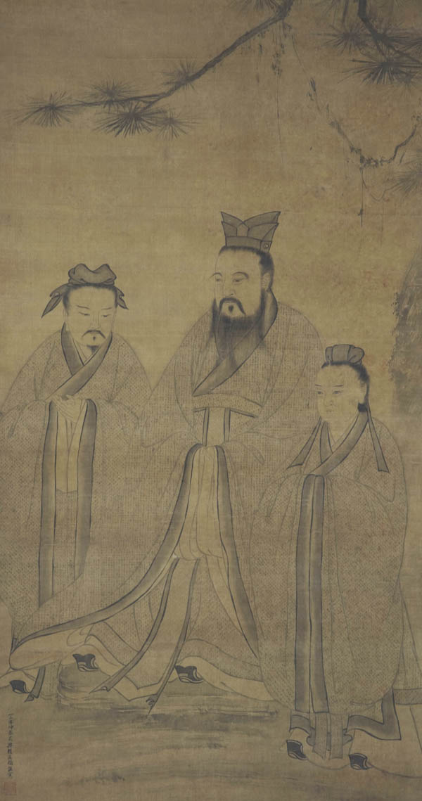 值得一提的是,孔子博物館的“明彩繪孔子圣跡圖”一改傳統的展陳模式,被分散陳列于展廳各個區域,成為貫穿整個展覽的線索性展品。觀眾循著這套“連環畫”,便能清晰梳理出孔子跌宕起伏的一生??鬃硬┪镳^館長郭思克說,該館遴選了46組館藏珍品參展,涵蓋“商周十供”“明彩繪孔子圣跡圖”及包括“三圣像”在內的多幅珍貴孔子畫像。
