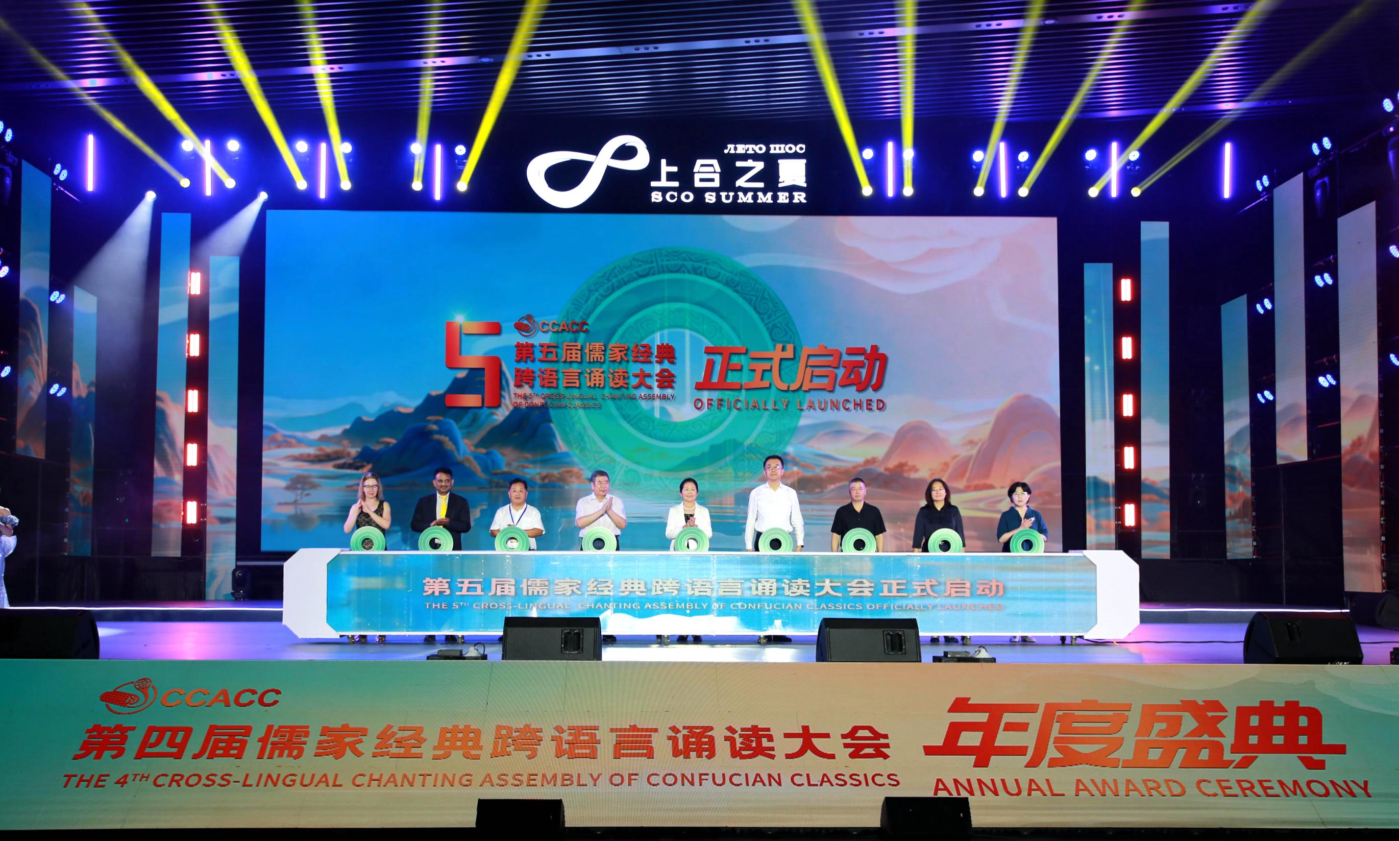 隨著象征“和合”的玉璧緩緩升起,第五屆儒家經典跨語言誦讀大會正式啟動,再次向世界發出“經典之約”。新一屆大會將增設“最佳國際傳播獎”, 以進一步提升國際傳播效能。同時,開展國際青少年研學營活動,讓各國青少年在文明對話中筑牢理解之基、厚植共情之壤。