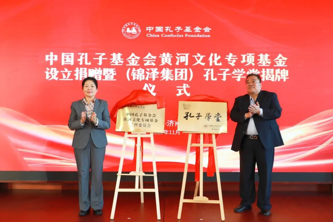 11月16日,中國孔子基金會黃河文化專項基金設立捐贈暨錦澤集團孔子學堂揭牌儀式在山東錦澤實業集團有限公司舉行。尼山世界儒學中心、中國孔子基金會秘書處與錦澤實業集團將共同擔負起弘揚黃河文化、講好黃河故事的時代使命,為建設中華民族共有的精神家園,提升國家文化軟實力貢獻力量。