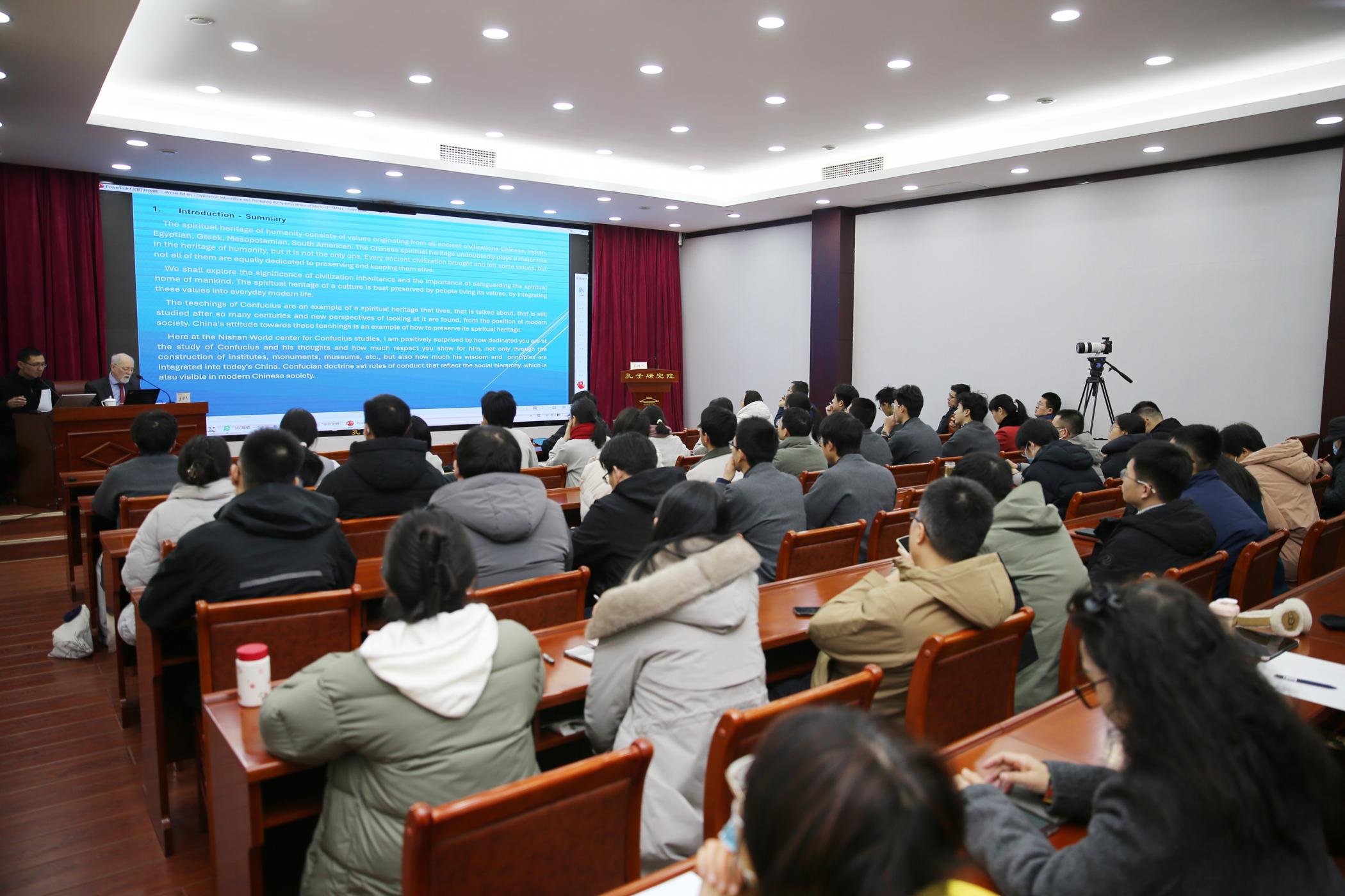 孔子研究院研究員魏衍華博士主持講座,陳松博士翻譯。尼山世界儒學中心(中國孔子基金會秘書處)相關人員、孔子研究院全體科研人員及闕里書院的師生認真聆聽了本場講座。