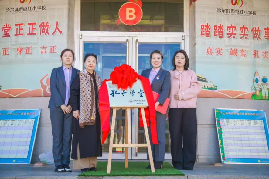 孫麗萍與嘉賓們共同為“繼紅小學孔子學堂”揭牌,紅綢落下,牌匾熠熠生輝??鬃訉W堂落戶各大、中、小學校,為師生深入學習儒家文化搭建了專業平臺。在這里,《論語》的學習不再局限于課堂,家庭也能參與其中,通過豐富多樣的活動,如親子、師生共讀分享會、經典誦讀比賽等,讓老師、家長和學生共同沉浸在儒家文化的海洋中,修身立德,啟智潤心。