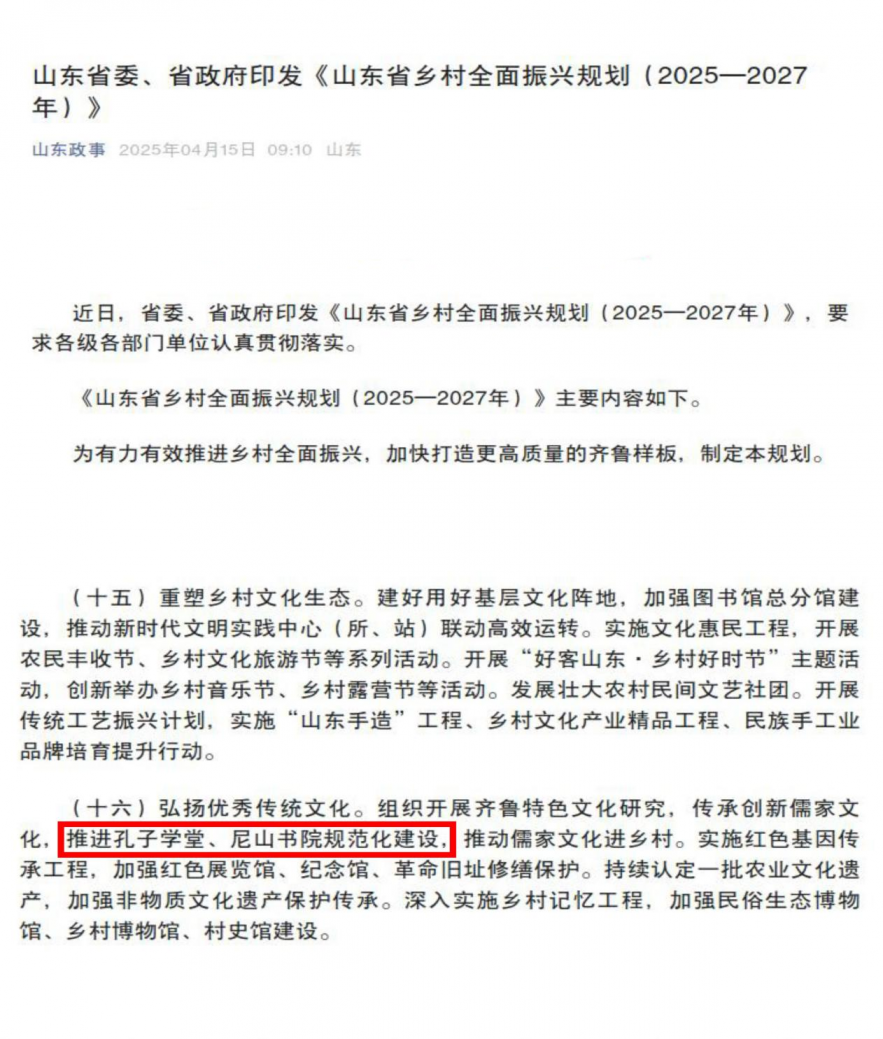 孔子學堂成為《山東省鄉村全面振興規劃(2025-2027年)》重點品牌項目